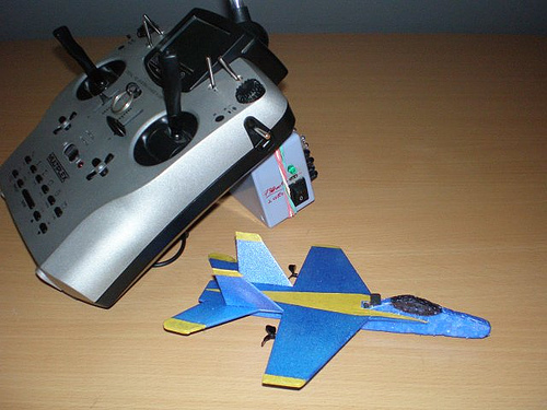 Here’s my new indoor plane. A 6" infrared controlled F18 Hornet in the blue angels color scheme. Total weight is 5.5 grams. You can read more in my rcgroups post.
