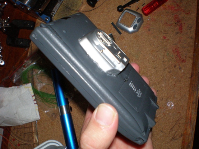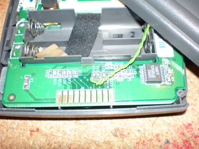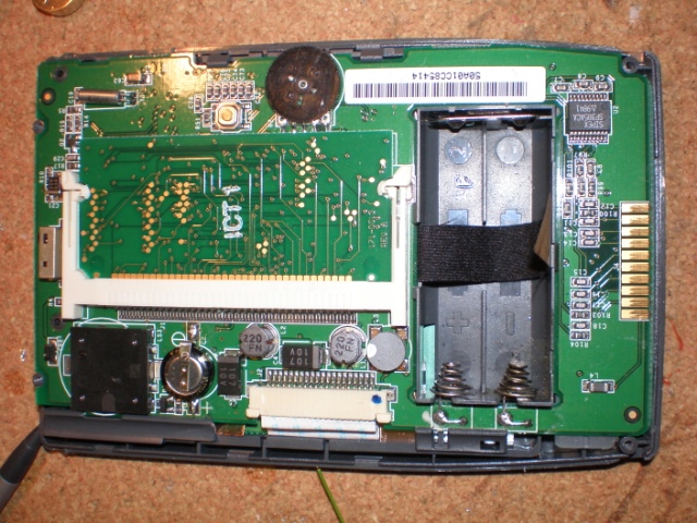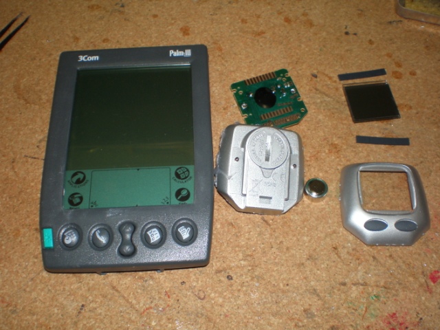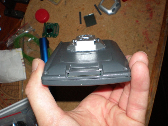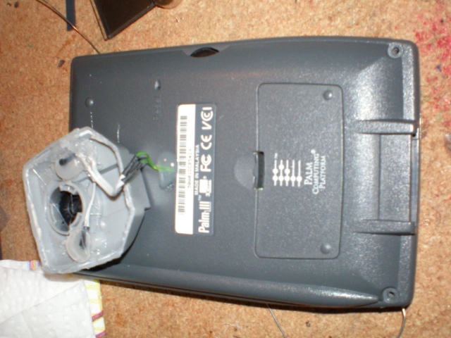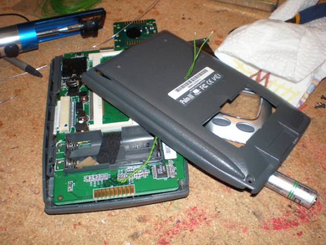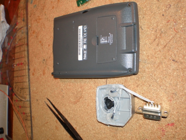 But before glueing the lower shell I soldered some wires straight on the Palm III interface board and brought them outside via a small hole that gets covered by the lower shell.