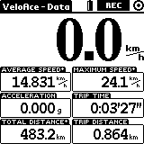 Because I had an old Palm III laying around catching some dust, I thought a bit of googling around Palm and bike computer would not hurt. That is when I discovered Veloace (http://www.engbedded.com/veloace). VeloAce is an Open Source bike computer for PalmOS devices with some very advanced features, like logging distance versus speed, acceleration, trip time and a lot more.