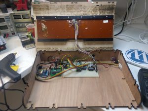After soldering an giving everything a place in the enclosure, I used a hot glue gun to stick everything in place.